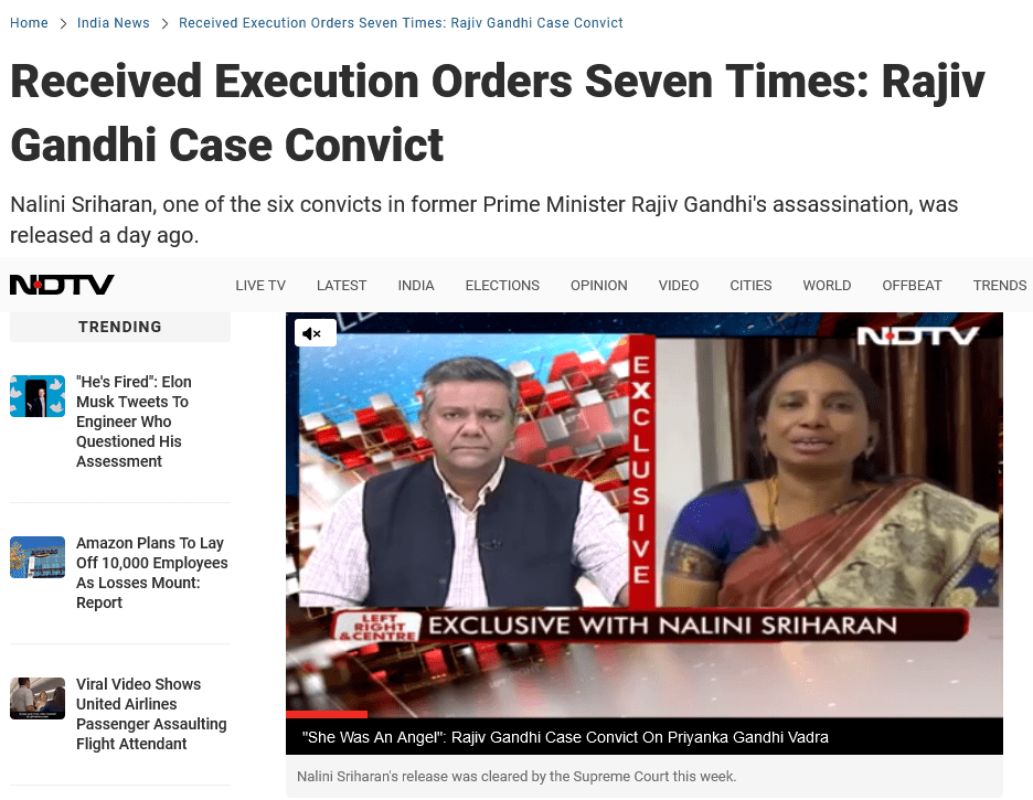 अब सोनिया गाँधी तो अपने पति के प्रेम से और प्रियंका गाँधी, राहुल गाँधी को अपने पिता के प्रेम से वंचित रखा तो क्या? आखिर हक़ बनता है नलिनी का फांसी से बच कर जेल से आजाद हो कर अजात हवा में अपने पति और बेटी के साथ सुखमय जीवन यापन करने का, हमारे देश का कानून दयालू जो है.
